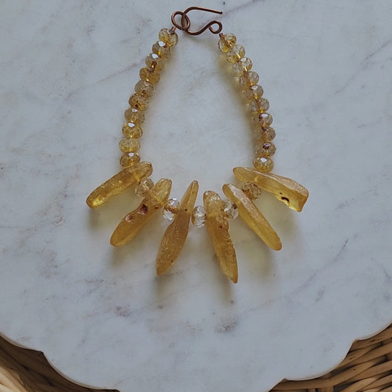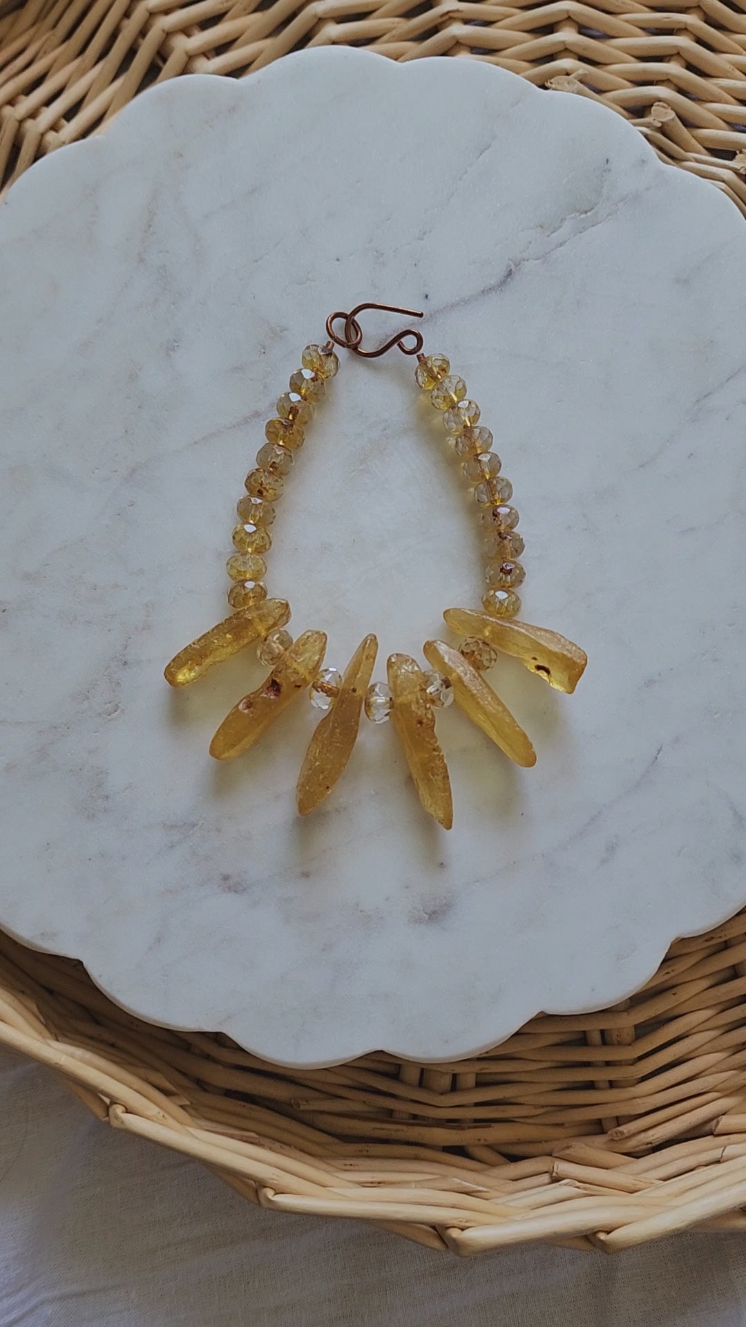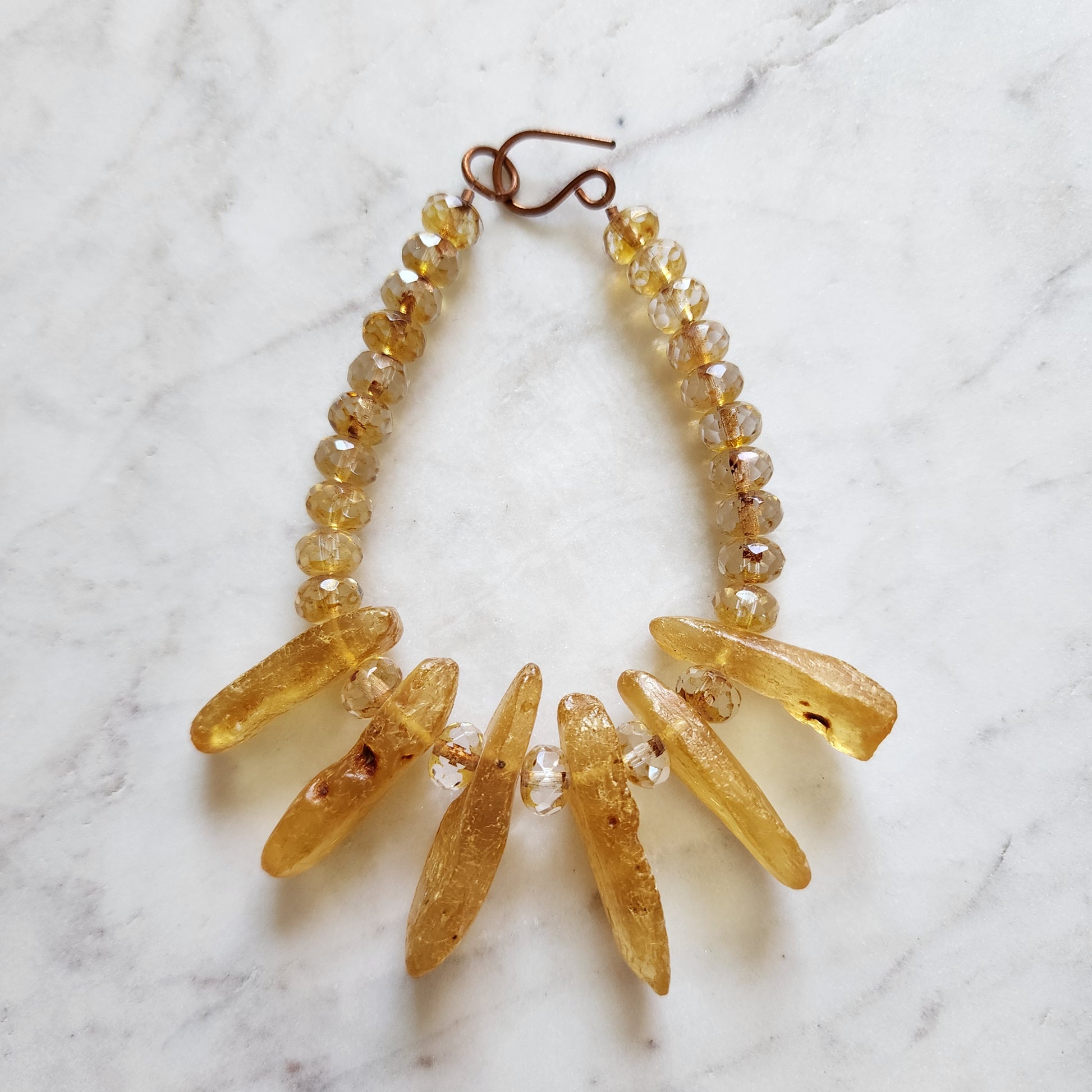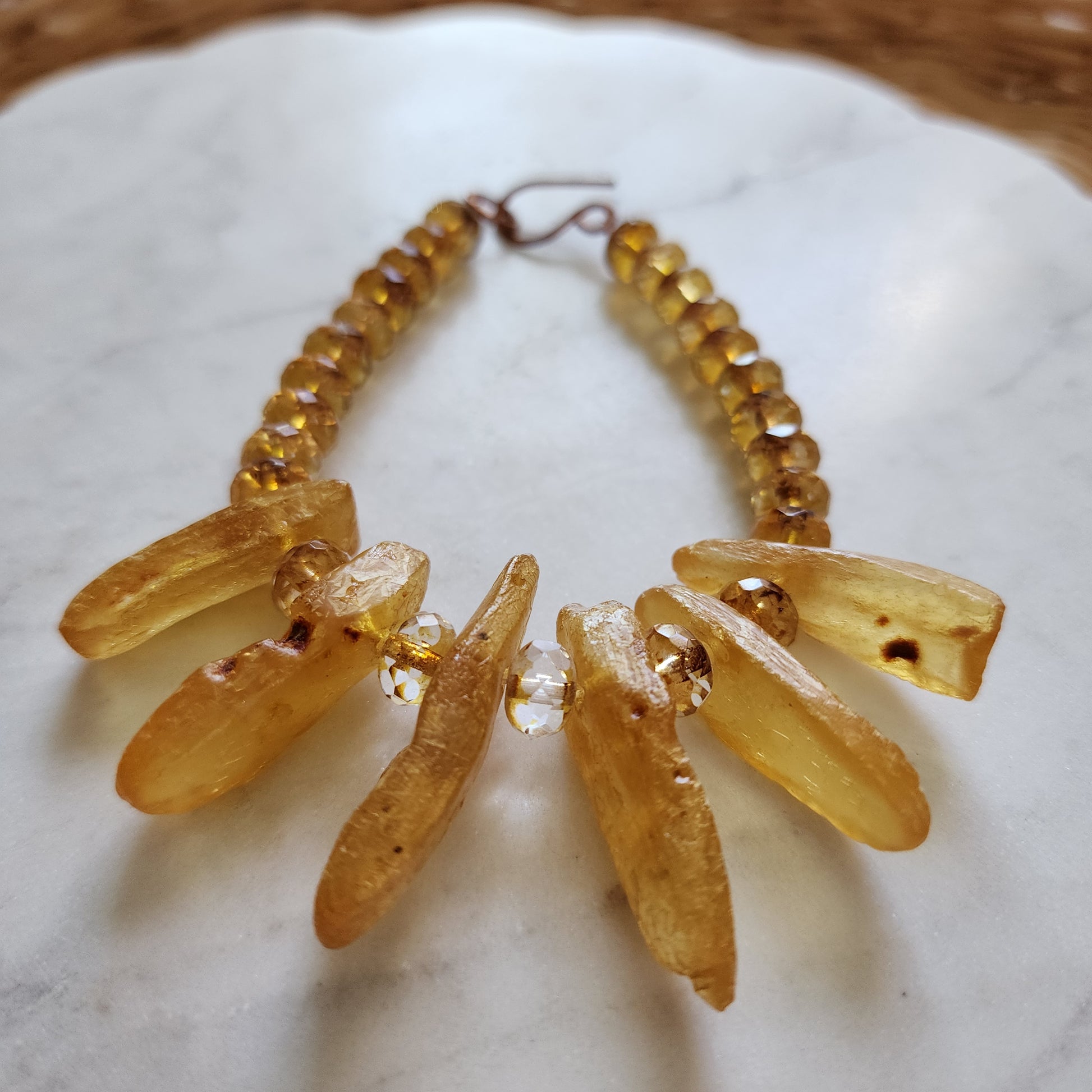 Golden Amber Spikes, Glass Beads & Copper Hook Clasp