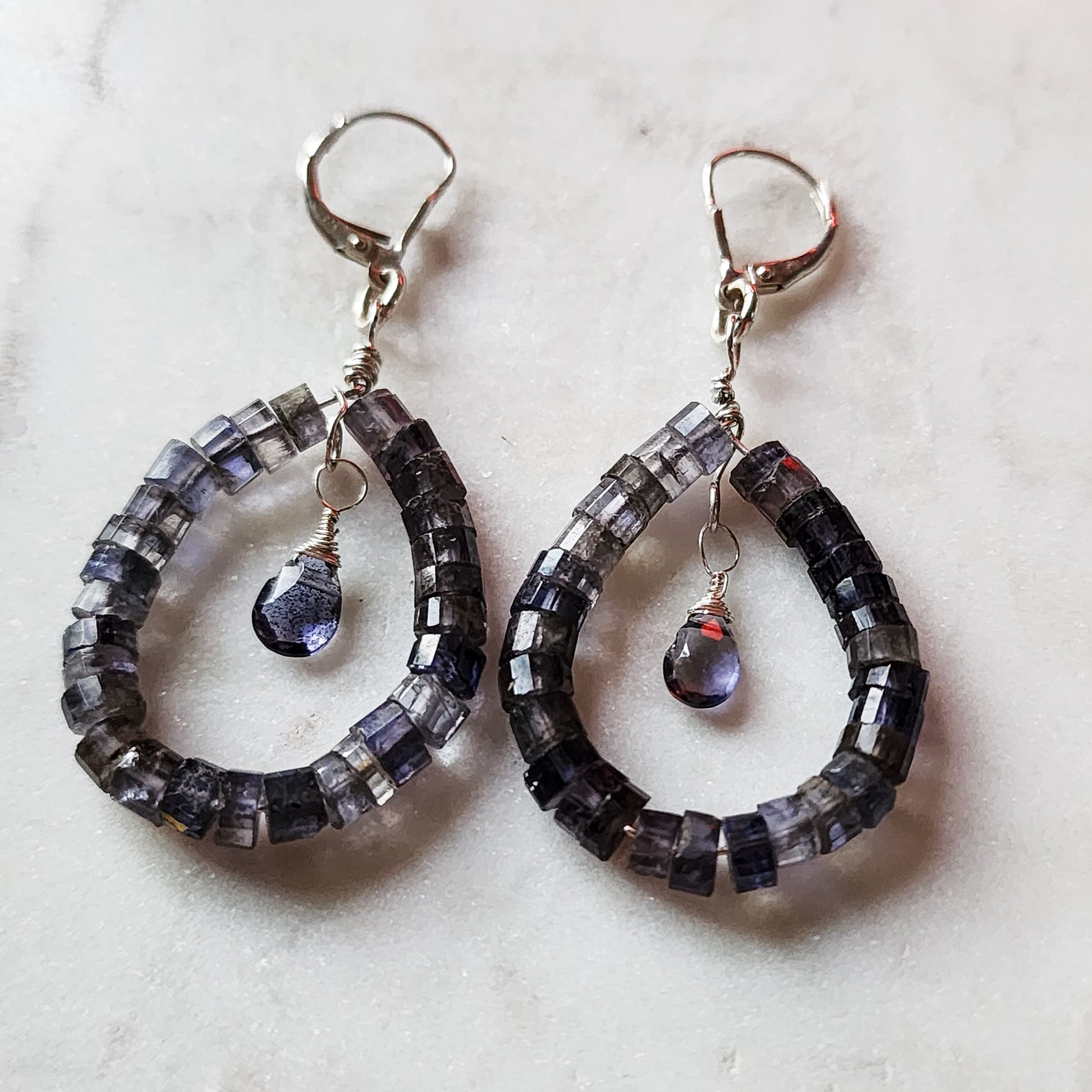 Iolite Heshi Hoops with Faceted Iolite Drops · Sterling Silver