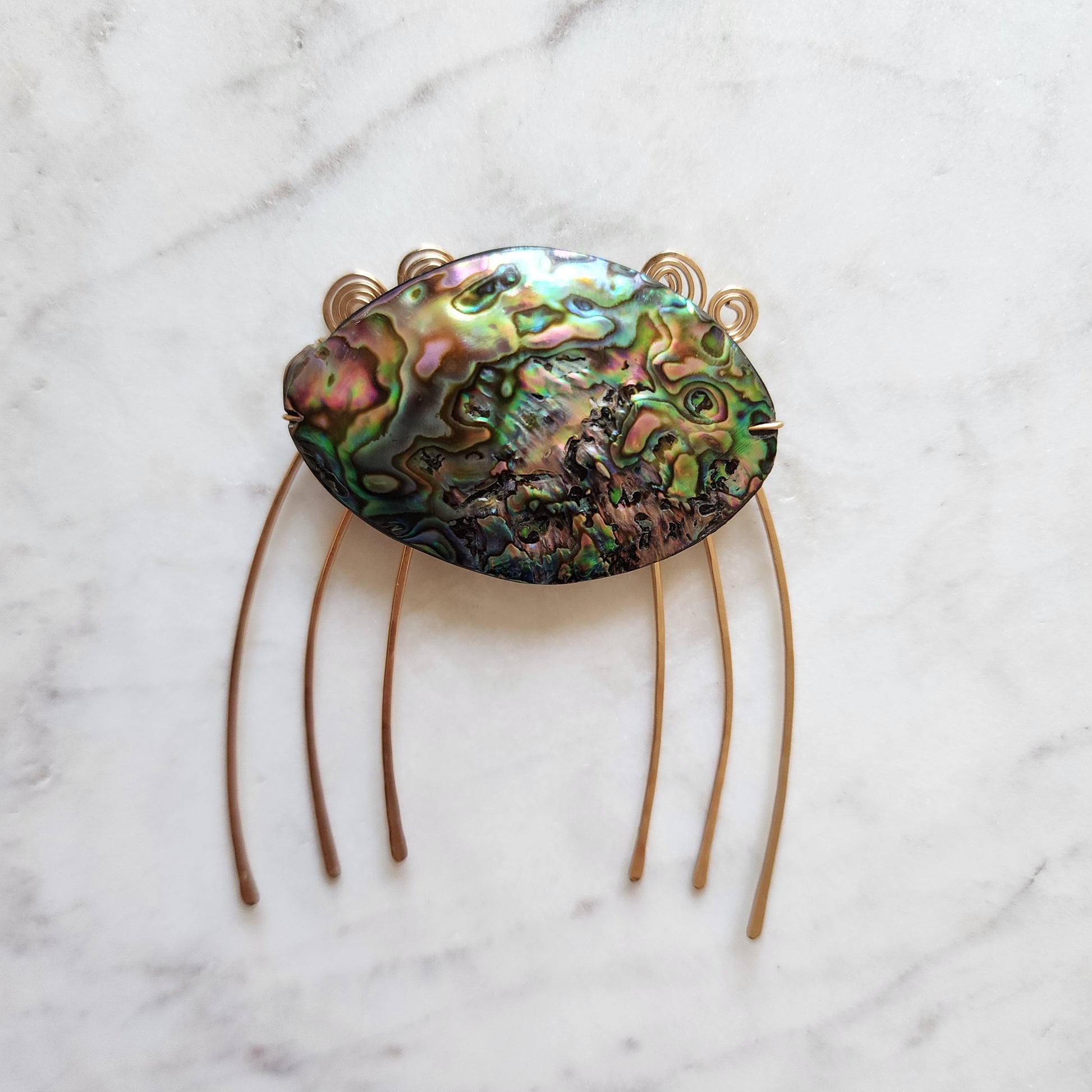 A one-of-a-kind hair adornment forged from 14kt gold-filled wire and genuine abalone shell. Each piece reflects the shifting light of the sea — a modern talisman of strength, femininity, and coastal elegance.
